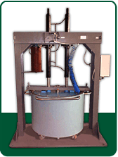 Machine for unloading of paintwork materials from the bowl. Press is designed for extrusion of the middle, high-viscosity and thick masses out of the bowls with a capacity of 500 liters